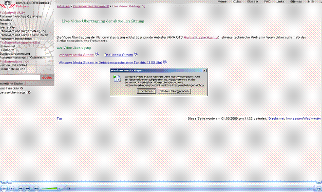 Tatsache ist, wie die beigefügten "Screen shots" belegen, dass weder der "livestream" der über ORF.at abrufbar ist, noch der "livestream" über die Internetseite des Parlamentes via APA funktionsfähig waren.