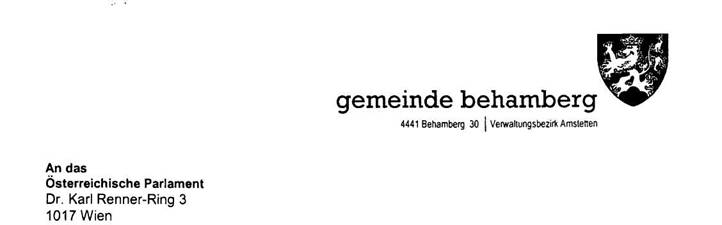Der Gemeinderat der Gemeinde Behamberg hat in seiner Sitzung am 12. Mai 2011 folgende Resolution ein- stimmig beschlossen:
