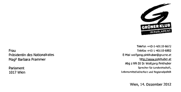 DER GRÜNE KLUB IM PARLAMENT . 1017 WIEN . ÖSTERREICH