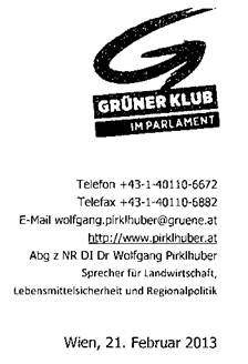DER GRÜNE KLUB IM PARLAMENT . 1017 WIEN . ÖSTERREICH