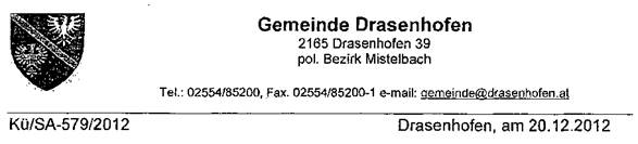 Der Gemeinderat der Gemeinde Drasenhofen hat in seiner Sitzung am 20.12.2012 folgende
