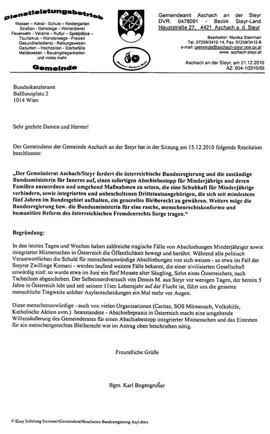 Betreff: Petition betreffend eine rasche, menschenrechtskonforme und humanitäre Reform des österreichischen Fremdenrechts