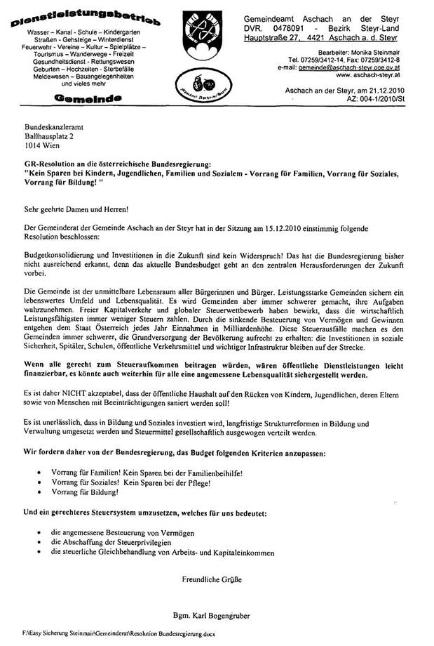 Betreff: Petition betreffend „'Kein Sparen bei Kindern, Jugendlichen, Familien und Sozialem“