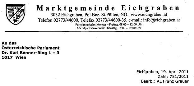 Gemeinderat der Marktgemeinde Eichgraben hat in seiner Sitzung vom 30. März 2011