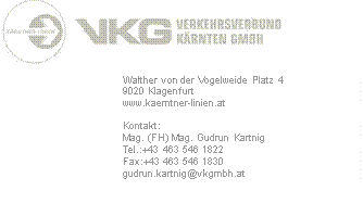 Die Verkehrsverbund Kärnten GmbH (VKG) nimmt zu dem im Betreff genannten Entwurf, welcher mit Schreiben vom 20. Oktober 2010, GZ BMVIT-239.597/0014-V/INFRA6/2010 zur Stellungnahme übermittelt wurde, wie folgt Stellung: