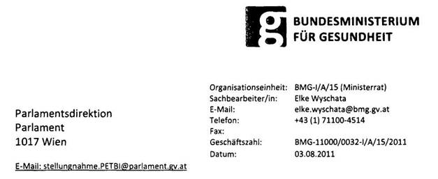 L1.3/2011, teilt das Bundesministerium für Gesundheit zu den im Betreff genannten