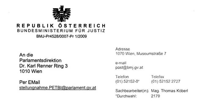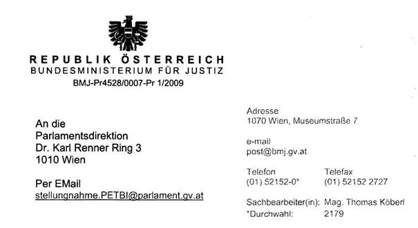 Betrifft: Petition Nr. 30 „Finanzielle Absicherung von ,147 - Rat auf Draht"; GZ: 17010.0020/69-L1.3/2009; Stellungnahme des Bundesministeriums für Justiz