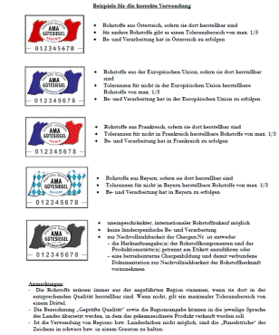 In der AMA-Gütesiegel Richtlinie für Be- und Verarbeitungsprodukte ist unter http://www.ama-marketing.at/home/groups/16/AMA_Guetesiegel_Richtlinie_Be_und_Verarbeitungsprodukte_010913_final.pdf detailliert nachzulesen, unter welchen Voraussetzungen ein AMA-Gütesiegel verliehen werden darf.