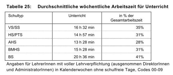 Das damalige Bundesministerium für Wissenschaft, Kunst und Kultur hat im Jahr 2000 vom Institut SORA eine Arbeitszeitstudie über die Arbeit der LehrerInnen erstellen lassen. Darin findet sich eine Liste der Tätigkeiten, die LehrerInnen in Ausübung ihres Berufes ausführen. Unterricht in der Klasse ist darin einer von 49 genannten Punkten.