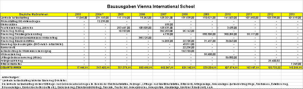 Dazu ist auf die beigefügte, von der mit der Liegenschaftsverwaltung betrauten Burghauptmannschaft Österreich zur Verfügung gestellte Tabelle zu verweisen.