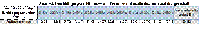 Nachfolgend werden die beim Hauptverband der österreichischen Sozialversicherungsträger registrierten unselbständigen Beschäftigungsverhältnisse in Österreich der Branche ÖNACE 81 von Personen mit nicht-österreichischer Staatsbürgerschaft aufgelistet.