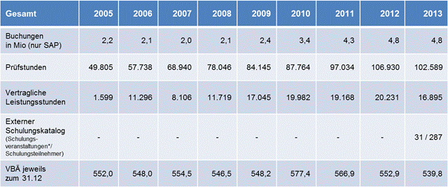 Die Personaleinsparungen in der BHAG von 2005 bis 2013 sind aufgrund der Vollbeschäftigungsäquivalente (VBÄ)-Werte im Zusammenhang mit der erbrachten Leistung jeweils zum Stichtag 31.12. ersichtlich.