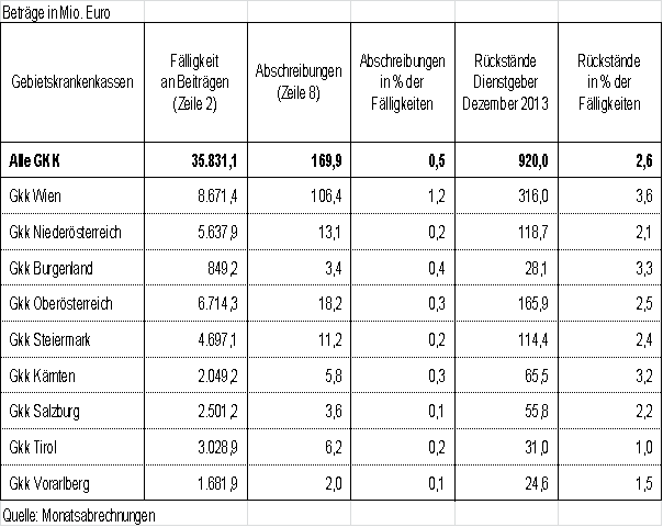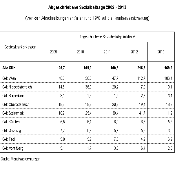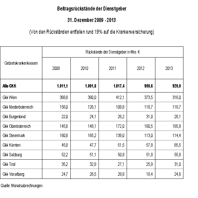 Die in der Tabelle 4 (zu Frage 4) ausgewiesenen Rückstände lassen keinen Schluss auf die endgültige Einbringungsquote zu. Ein Teil dieser Beträge kann aufgrund weiterer Maßnahmen (beispielsweise durch Mahnung, Ratenvereinbarung, allenfalls Exekutionsführung) eingebracht werden. Österreichweit können rund 99,4 % der vorgeschriebenen Beiträge eingebracht werden. Lediglich ca. 3,91 % der vorgeschriebenen Beiträge müssen gemahnt und nur rund 0,83 % der vorgeschriebenen Beiträge werden in Exekution gezogen. Beispielsweise die NÖGKK hatte im Jahr 2013 eine Einbringungsquote von 99,77 %. Ähnliche Werte weisen auch die übrigen Träger auf.