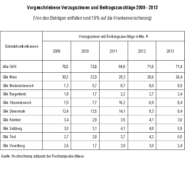 Die Tabelle 3 (zu Frage 3) stellt die Summe aus Verzugszinsen und Beitragszuschlägen dar. Eine Trennung ist nicht möglich.
