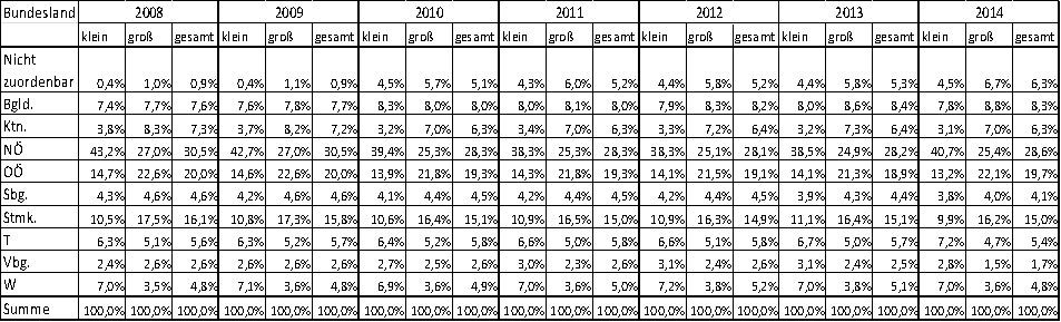 Jene Fälle, bei denen die gespeicherte Postleitzahl nicht den Formvorschriften der österreichischen Postleitzahl entspricht bzw. welche auch nicht im Wertevorrat der österreichischen Postleitzahlen enthalten sind, werden dem Bereich "Bundesland nicht zuordenbar" zugerechnet.