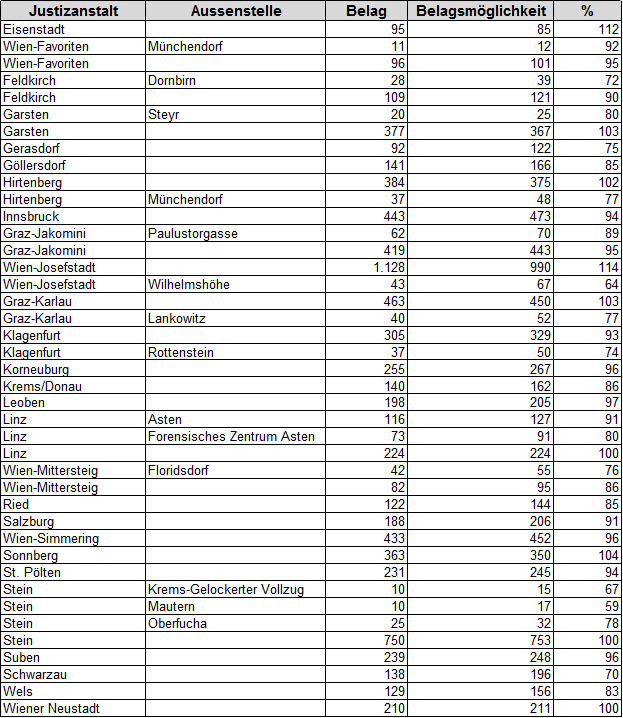 [1] Die Differenz zur Tabellensumme ergibt sich aus den dort nicht angeführten Haftarten (Anhaltung, Auslieferungs-, Übergabe-, Finanzstraf-, Verwaltungshaft etc.).