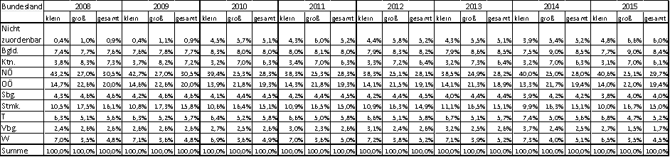Jene Fälle, bei denen die gespeicherte Postleitzahl nicht den Formvorschriften der österreichischen Postleitzahl entspricht bzw. welche auch nicht im Wertevorrat der österreichischen Postleitzahlen enthalten sind, werden dem Bereich "Bundesland nicht zuordenbar" zugerechnet.