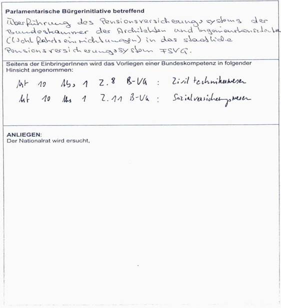 für eine Parlamentarische Bürgerinitiative