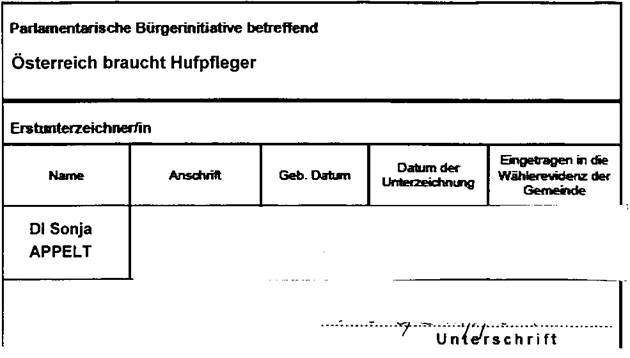 Beiblatt zur Parlamentarischen Bürgerinitiative "Österreich braucht Hufpfleger''