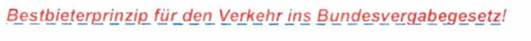 1. Verankerung des Bestbieterprinzips für den Öffentlichen Nah- und Regionalverkehr im Bundesvergabegesetz.