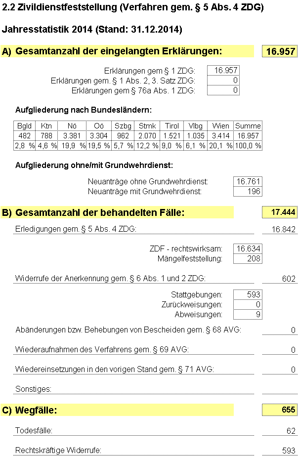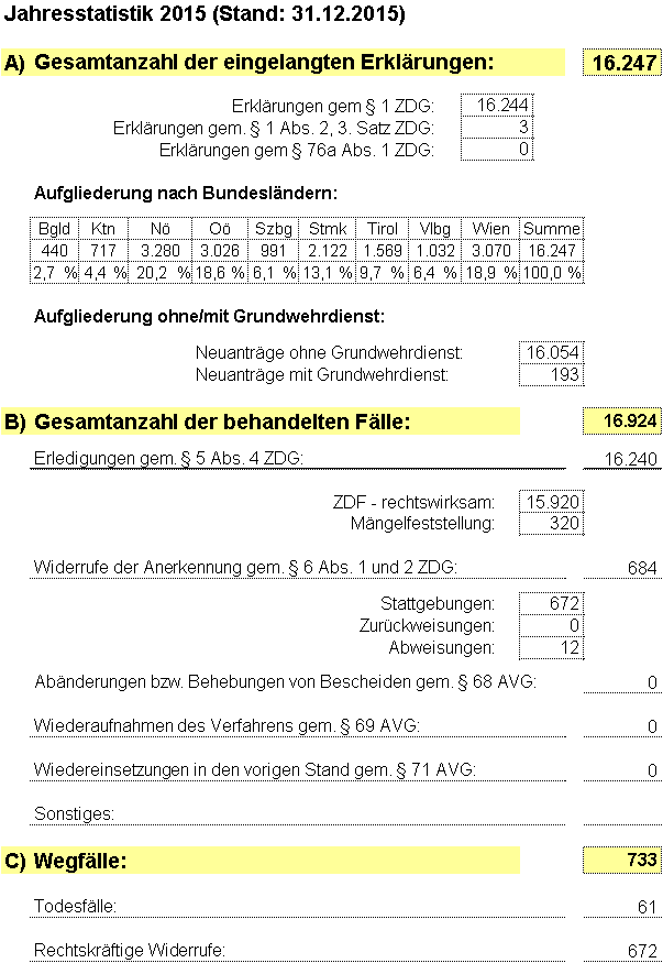 2.3 Zivildiensterklärungen 15