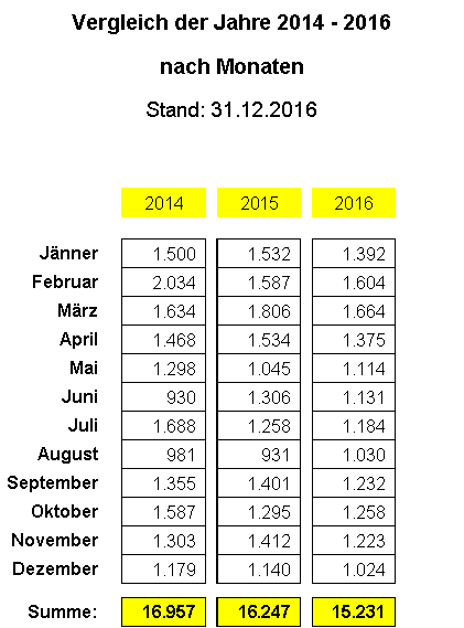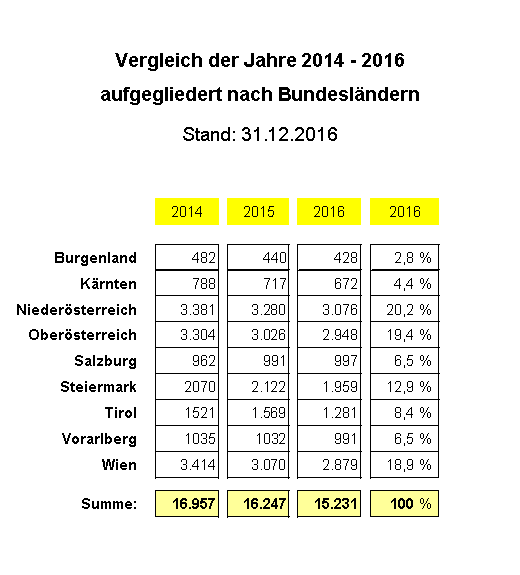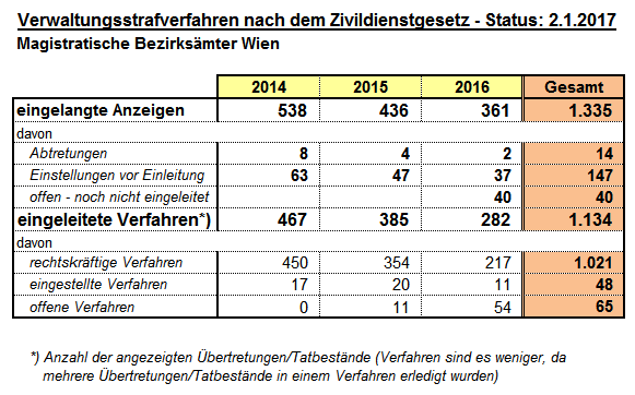 In den Jahren 2014 bis 2016 wurden insgesamt 126 Strafverfahren eingeleitet, wobei anzumerken ist, dass diese überwiegend Zivildienstleistende / Zivildienstpflichtige betroffen haben.