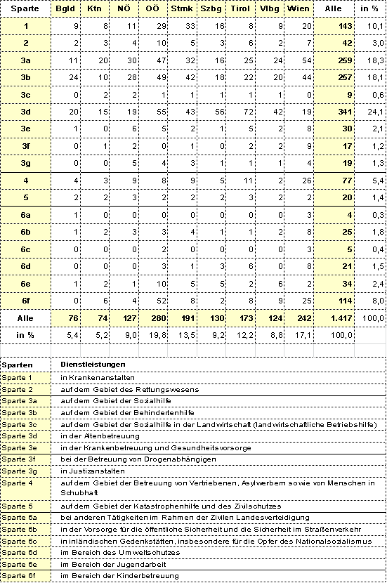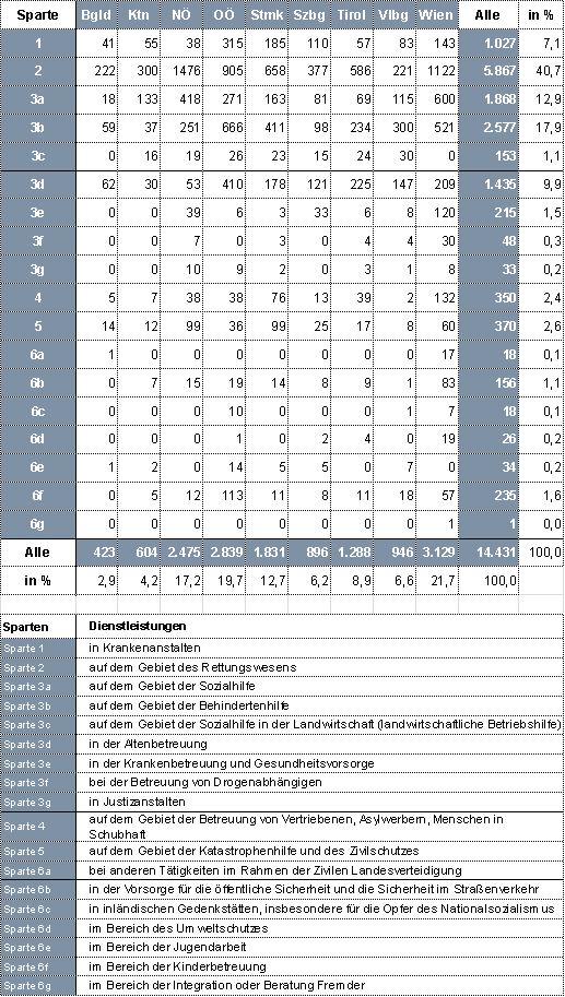 2.5.1 Anzahl aller anerkannten Zivildiensteinrichtung – Stand 31.12.2014 20