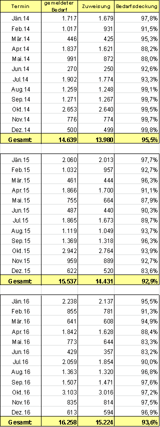 In den Jahren 2014 bis 2016 wurden neun anlassbedingte und 183 Routinekontrollen (Einrichtungen und Einsatzstellen) durchgeführt. Die Überprüfungsergebnisse waren als durchaus positiv zu bewerten.