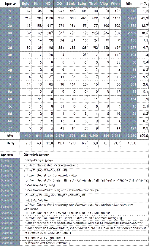 2.7 Zuweisungen nach Bundesländern und Dienstleistungssparten 22