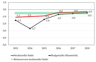 · Eine Regel über einen strukturell ausgeglichenen gesamtstaatlichen Haushalt („Schuldenbremse“) ab dem Jahr 2017, wobei der strukturell ausgeglichene Haushalt mit einem strukturellen gesamtstaatlichen Defizit von höchstens 0,45% des BIP definiert wird.