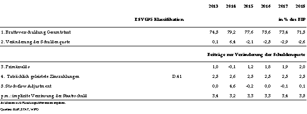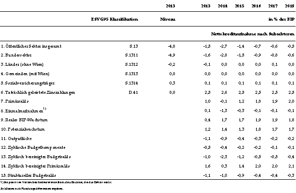 · Konsequente Fortsetzung der erfolgreichen Budgetkonsolidierung, Erzielen eines strukturell ausgeglichenen gesamtstaatlichen Haushalts ab 2016 und sukzessive Rückführung der Staatsschuldenquote