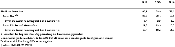 Der schrittweise Ausstieg des österreichischen Bankensektors aus dem staatlichen Hilfsmaßnahmenprogramm wurde im Rahmen des Interbankmarktstärkungsgesetzes (IBSG) bereits umgesetzt. Seit 1. Jänner 2011 dürfen keine neuen Haftungen auf Grundlage des IBSG mehr vergeben werden. Mit Ende des 1. Quartals 2014 belaufen sich die Garantien auf Wertpapieremissionen von Finanzinstitutionen noch auf rd. 1,2 Mrd. €. Die verbleibenden Haftungen laufen Mitte Juni endgültig aus.