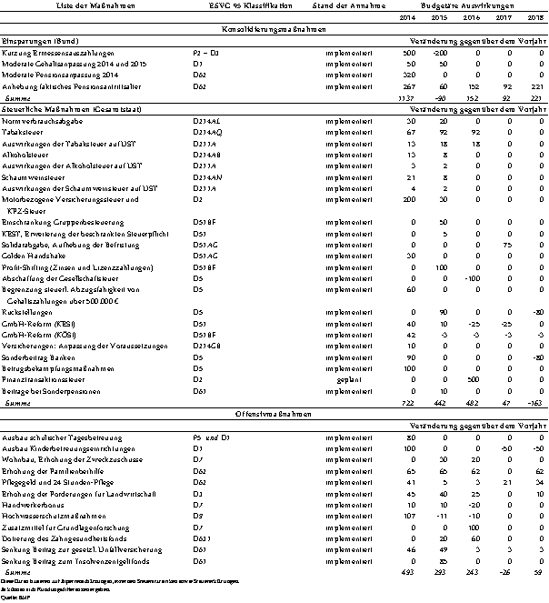Tabelle 13: Diskretionäre Maßnahmen (in Mio. €)