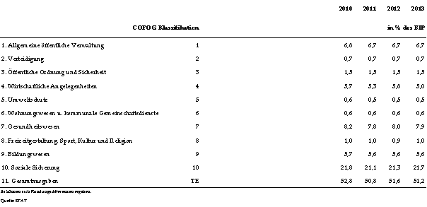 Tabelle 15: Funktionelle Gliederung der öffentlichen Ausgaben