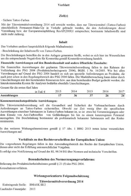 Unser Nachbarland Deutschland hatte bereits im Jahr 2009 mit der Tätowiertmittelverordnung reagiert, hierzulande gibt es bis dato keine rechtliche Regelung betreffend der Tätowiermittel.