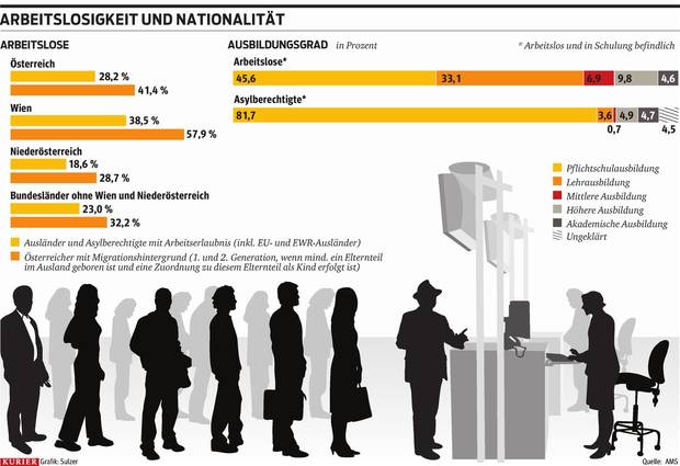 Die Tageszeitung Kurier veröffentlichte am 28.7.2016 folgende Zahlen, wobei als Quelle das AMS angegeben worden ist.