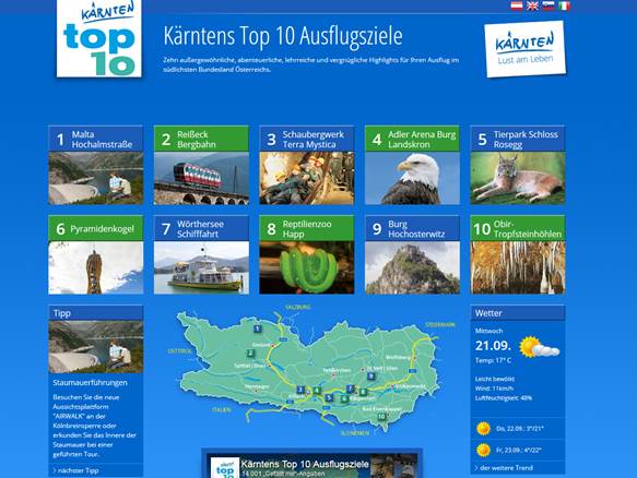Abbildung 1: Darstellung der Top 10 Ausflugsziele in Kärnten – Nr. 2: Reißeck Bergbahn (Quelle: http://www.kaernten-top10.at/de/)