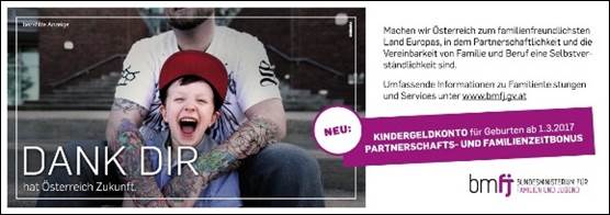 In „Heute“ vom 23. September 2016 ist auf Seite 13 ein Inserat des BMFJ mit dem Titel „Dank dir“ zu finden.