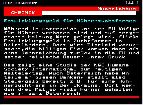 Folgendes wurde am 14.10.2016 im ORF Teletext berichtet: