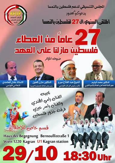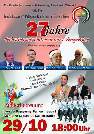In Wien finden seit vielen Jahren – organisiert vom Koordinationsforum zur Unterstützung Palästinas (KFUP) – diverse Vernetzungstreffen von Islamisten statt. Auch heuer findet das Treffen in Räumlichkeiten der Stadt Wien statt.