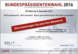 In der „Krone“ vom 13. November 2016 ist auf Seite 7 ein Inserat des BMI mit dem Titel „Bundespräsidentenwahl 2016“ zu finden.