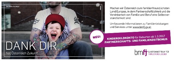 In „Österreich“ vom 24. November 2016 ist auf Seite 14 ein Inserat des BMFJ mit dem Titel „Dank dir“ zu finden.