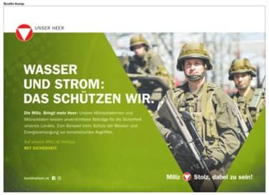 In „Österreich“ vom 2. Dezember 2016 ist auf Seite 5 ein Inserat des BMLVS mit dem Titel „Mit Sicherheit“ zu finden.