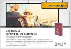 betreffend „Departures“ – Inserat des BMI in der „Presse“ am 11. Dezember 2016