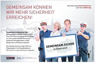 In „Heute“ vom 6. Dezember 2016 ist auf Seite 27 ein Inserat des BMI mit dem Titel „Gemeinsam sicher“ zu finden.