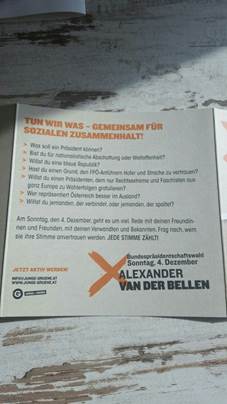 Flyer, die gegenüber der FPÖ und Norbert Hofer diffamierend wirkten