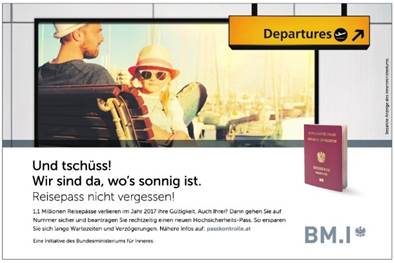 betreffend „Departures“ – Inserat des BMI in „Heute“ am 23. Dezember 2016