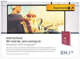 In „Österreich“ vom 15. Dezember 2016 ist auf Seite 20 ein Inserat des BMI mit dem Titel „Departures“ zu finden.