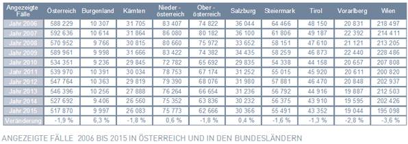 Der Homepage des Bundesministeriums für Inneres konnte die folgende Statistik aus dem Bericht „Sicherheit Österreich 2015“ entnommen werden: