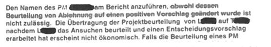a. Ist es in diesem Zusammenhang korrekt, dass PM L. (auch in Frage 4) für einen ablehnenden Entscheidungsvorschlag stand, während die von Fr Hammerschmid eingesetzten PM T. und F. gegenteiliger Meinung waren?